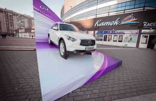 Как видим, существует большое количество видов подиумов для транспортных средств. В настоящее время особую популярность завоёвывают диджитал-конструкции, воспроизводящие видеорекламу за счет светодиодных панелей.