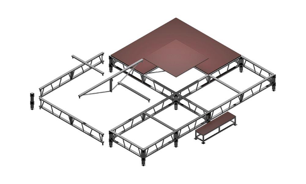 Автоподиумы представляют собой сложную техническую конструкцию, которая состоит из различных элементов. Все составные элементы автоподиума можно разделить на основные и дополнительные. К основным конструктивным элементам, которые используются практически в каждом автоподиуме, относятся: