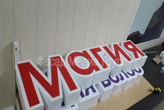 Уважаемые друзья! За изготовлением и установкой рекламных букв (плоских, объемных) обращайтесь в компанию «Фасад Медиа Групп». Высокий уровень сервиса и низкие цены гарантируем. Мы все сделаем сами: дизайн и эскиз макета, подготовка документов, согласование и монтаж. Фотоотчёт предоставляем бесплатно и в 100% объеме.