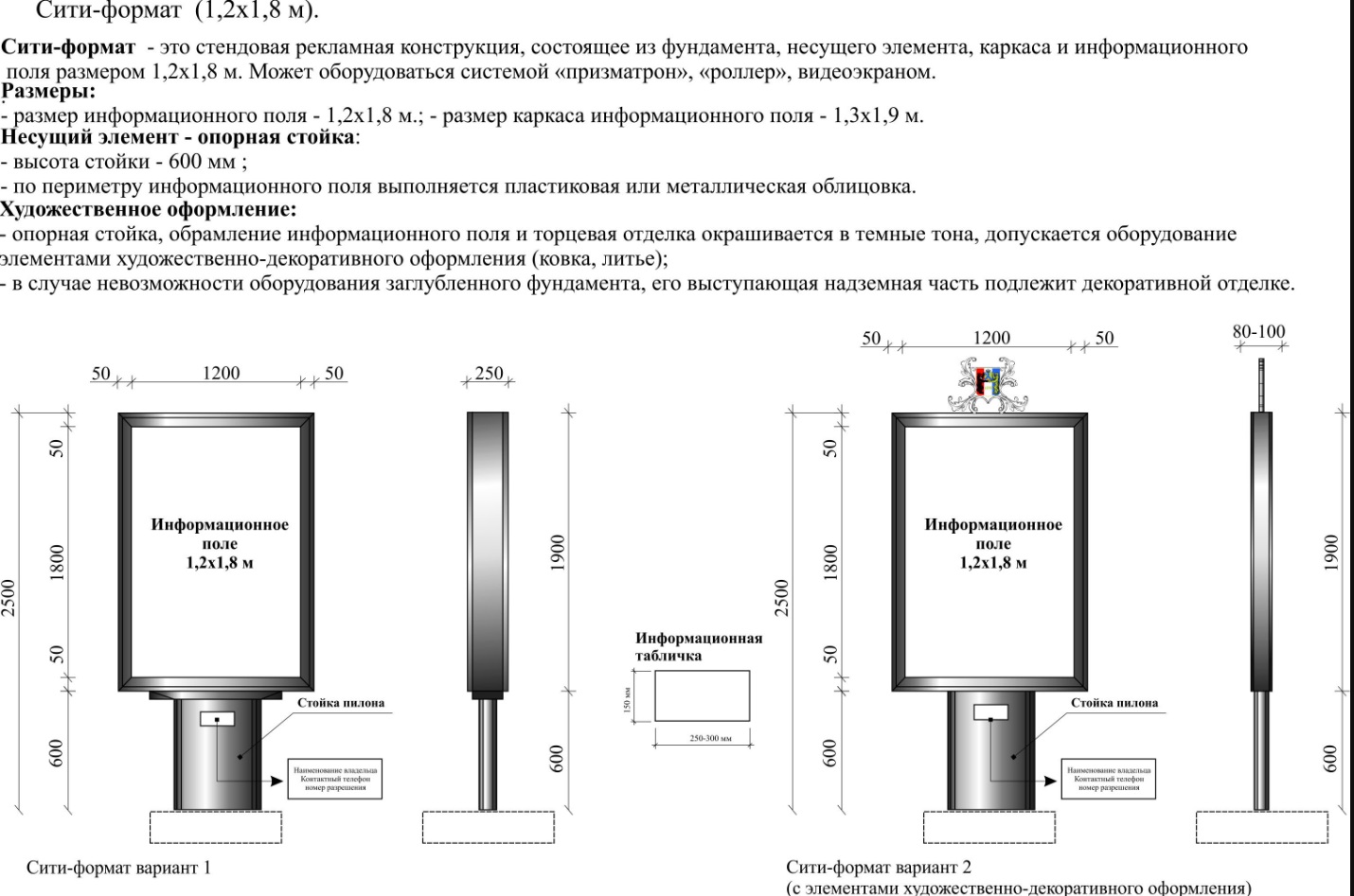 Цифровой сити-формат (также можно встретить названия: «лайтпостер», «пилон» и «сити-лайт») – это конструкция наружной рекламы, представляющая собой короб со светодиодным рекламным полем, предназначенная для размещения рекламных роликов. Обычные размеры рекламной конструкции – 1.2х1.8 м.