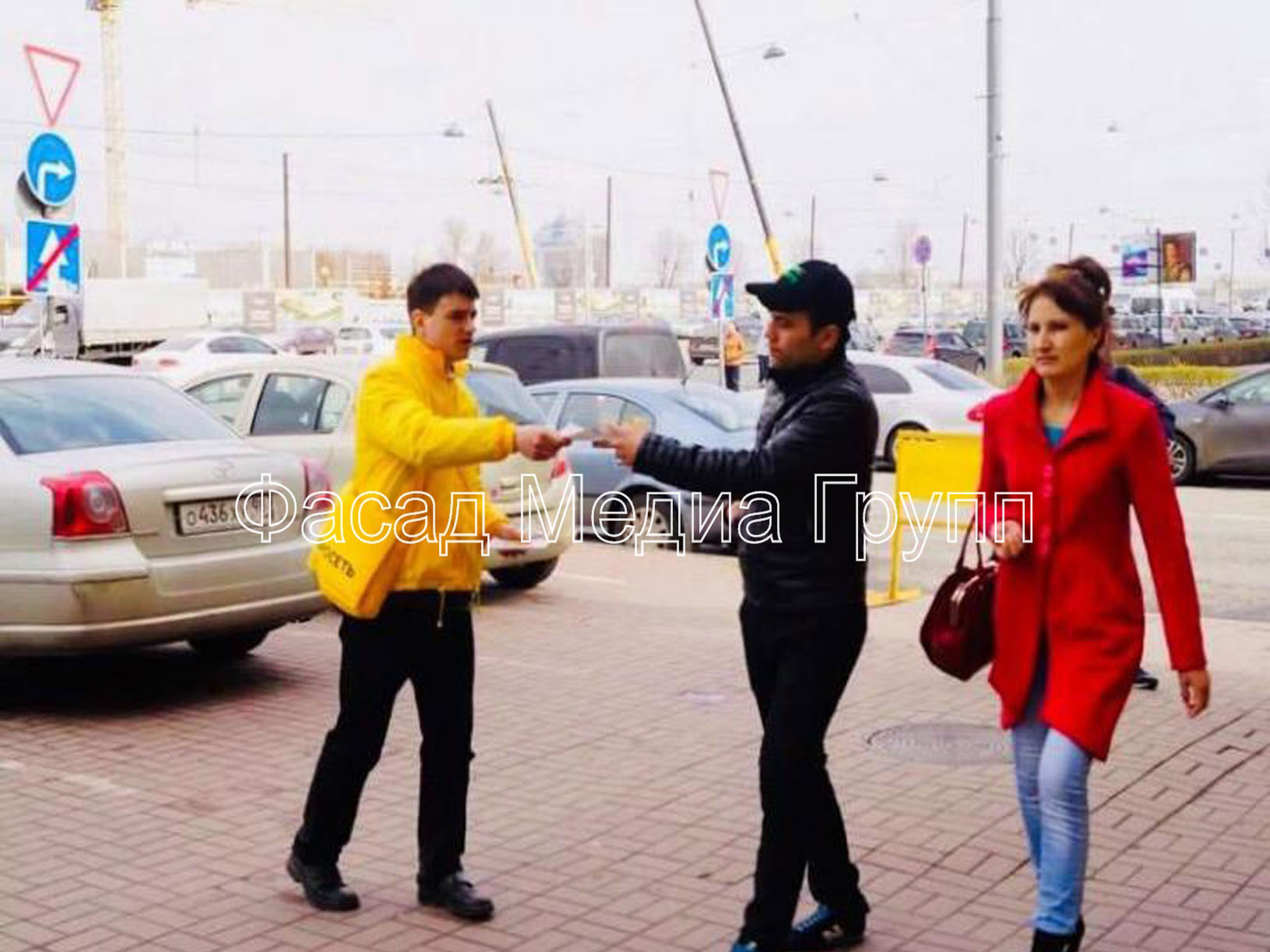 Пример раздачи листовок, буклетов, флаеров, афиш и другой печатной продукции. Фото 2