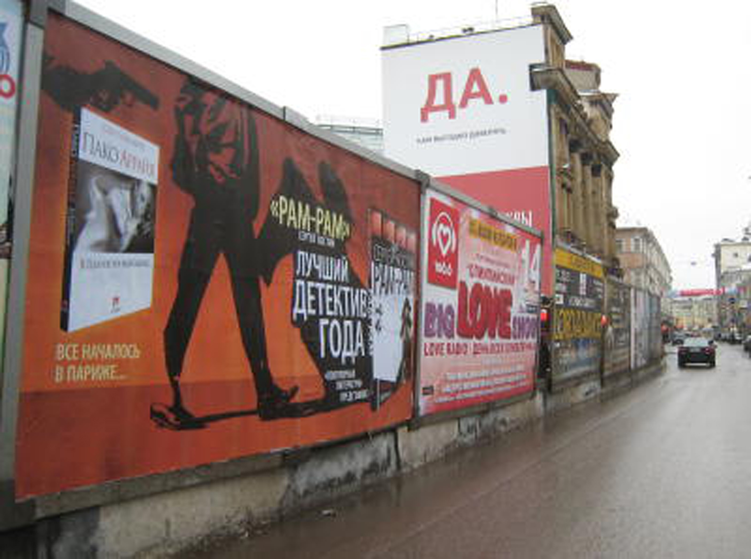 Можно коротко сказать, что реклама на заборах ориентирована на всех горожан.