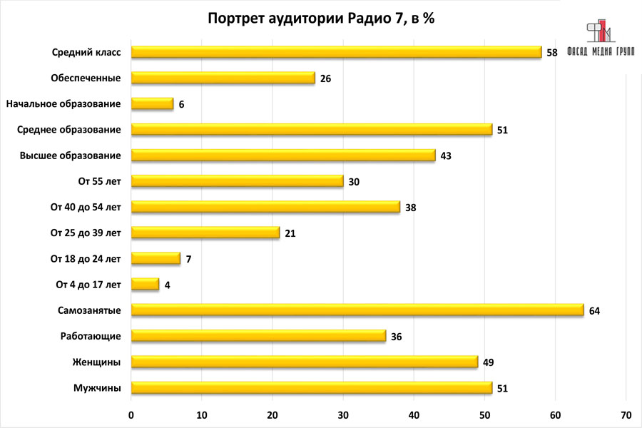 На вопрос: «Какова целевая аудитория радио «Радио 7»? - можно указать следующее:
