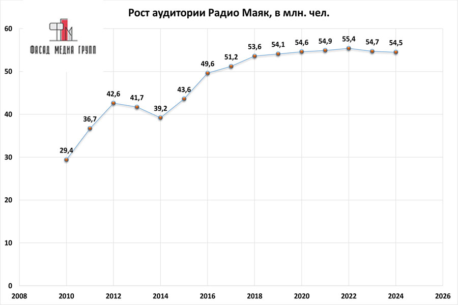 Показатели аудитории «Радио Маяк» по России: