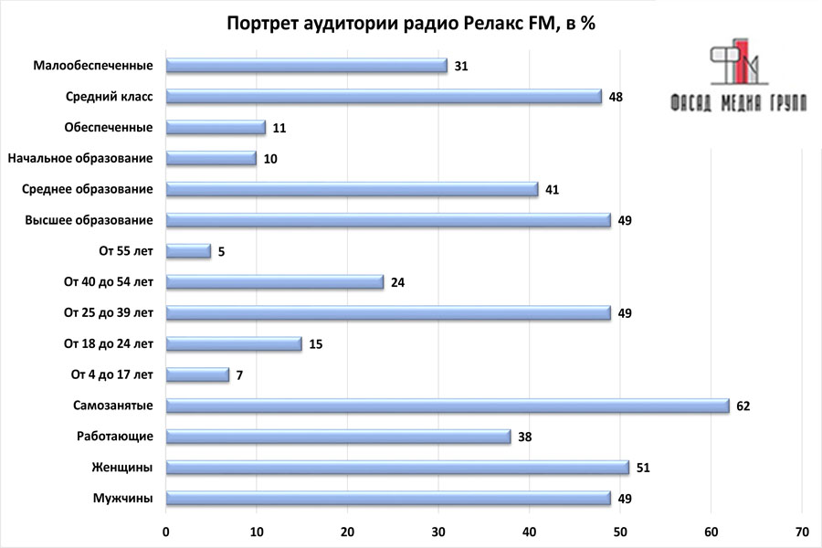 На вопрос: «Какова целевая аудитория «Релакс ФМ»? – можно указать следующее: