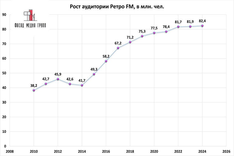 Благодаря качественному, сбалансированному контенту аудитория «Ретро ФМ» многочисленна и разнообразна.