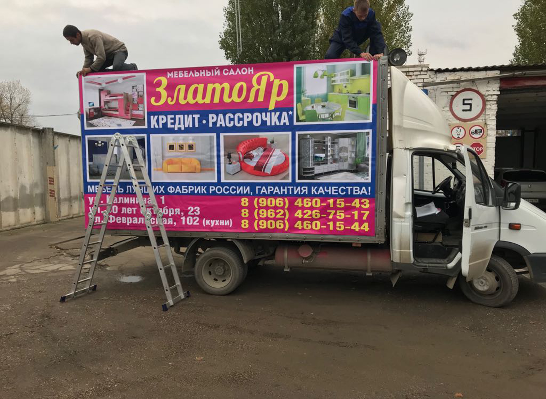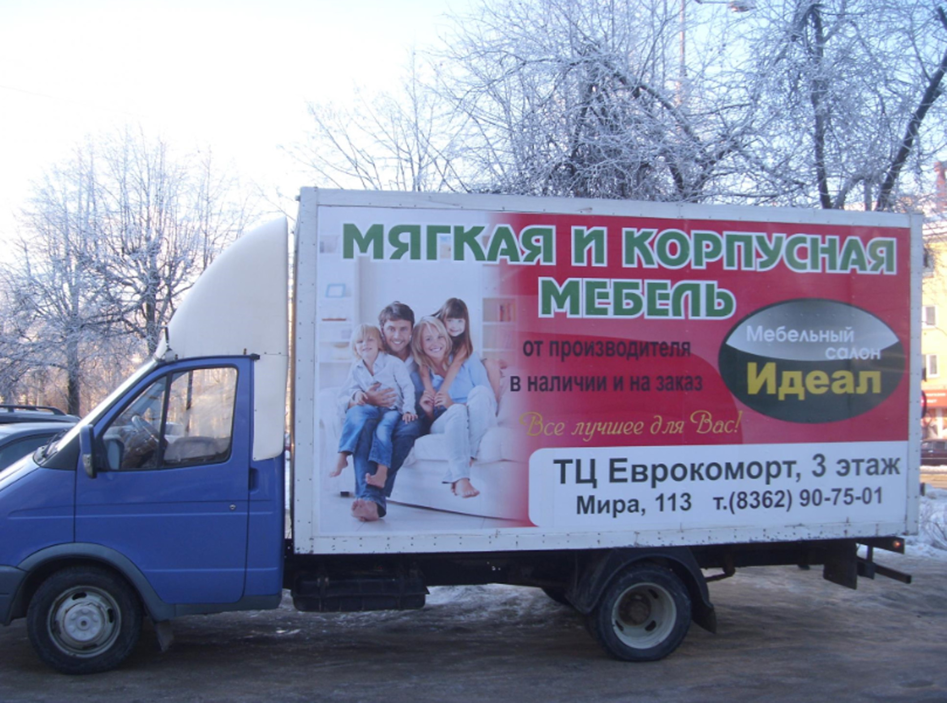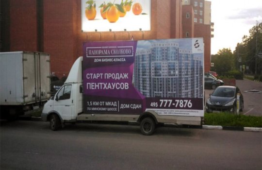 Приводим примеры монтажа рекламы на мобильных билбордах: