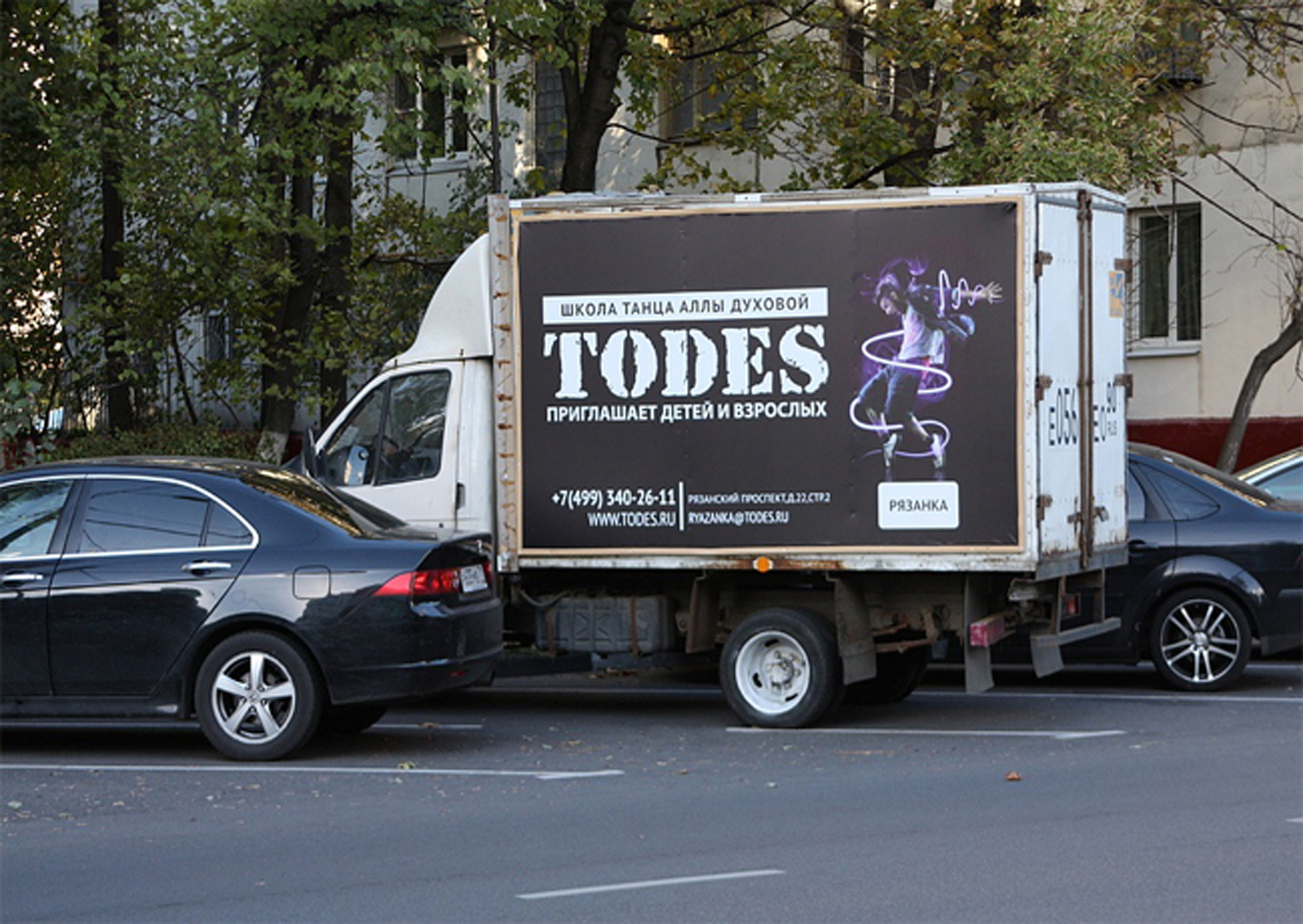 На видео, приведенном ниже, можно увидеть процесс создания макета для рекламы на мобильных билбордах: