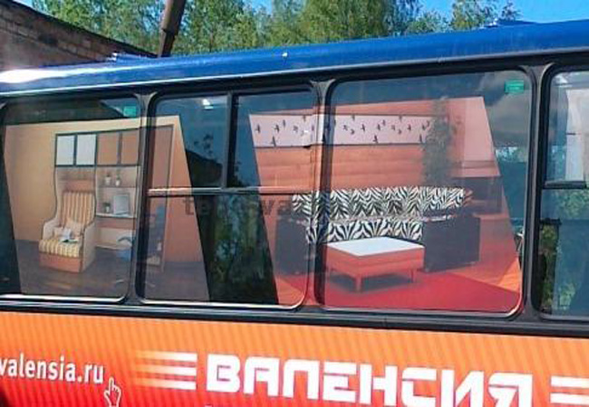 Приводим примеры монтажа рекламы на/в автобусах: