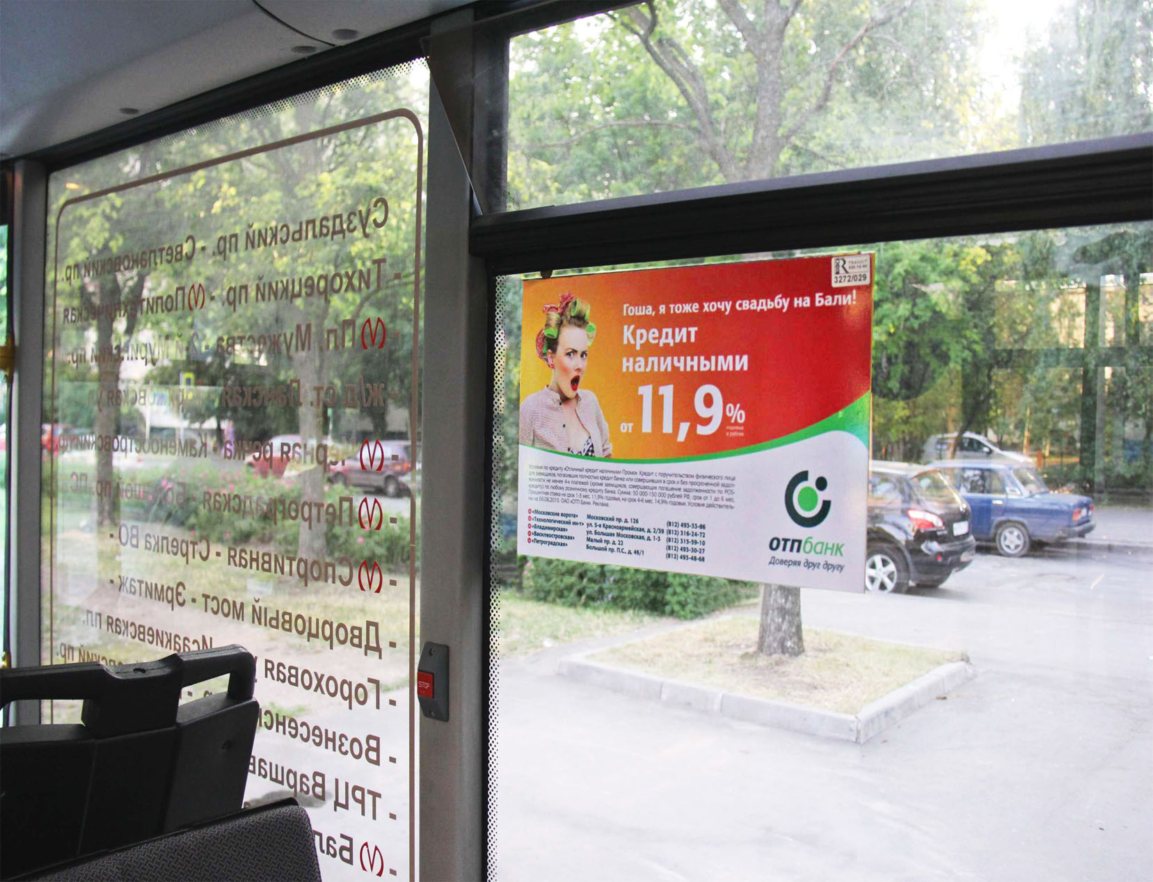 Рекламные стикеры в транспорте на фото выше