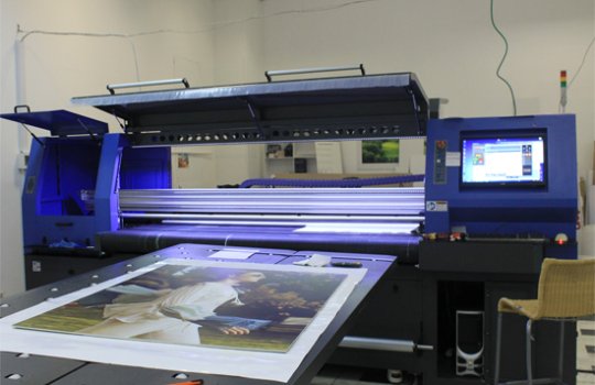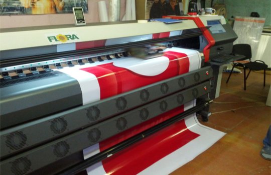 Для печати сольвентными красками применяется широкоформатный принтер. Чернила наносят на разные материалы: бумагу, баннерную ткань, винил. Благодаря основному компоненту тонкая часть материала растворяется, и в нее внедряются частицы красящего пигмента. Таким образом, чернила и носитель становятся единым целым.
