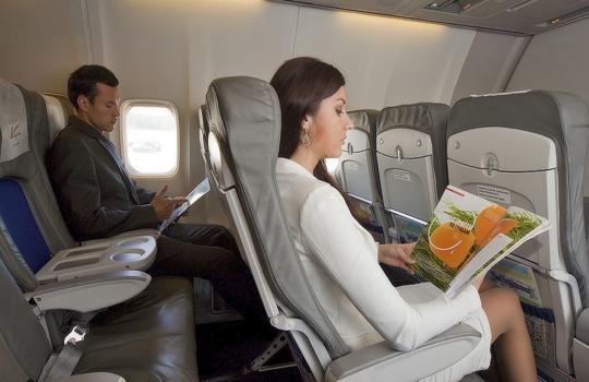 Реклама на спинках кресел в самолетах на фото выше