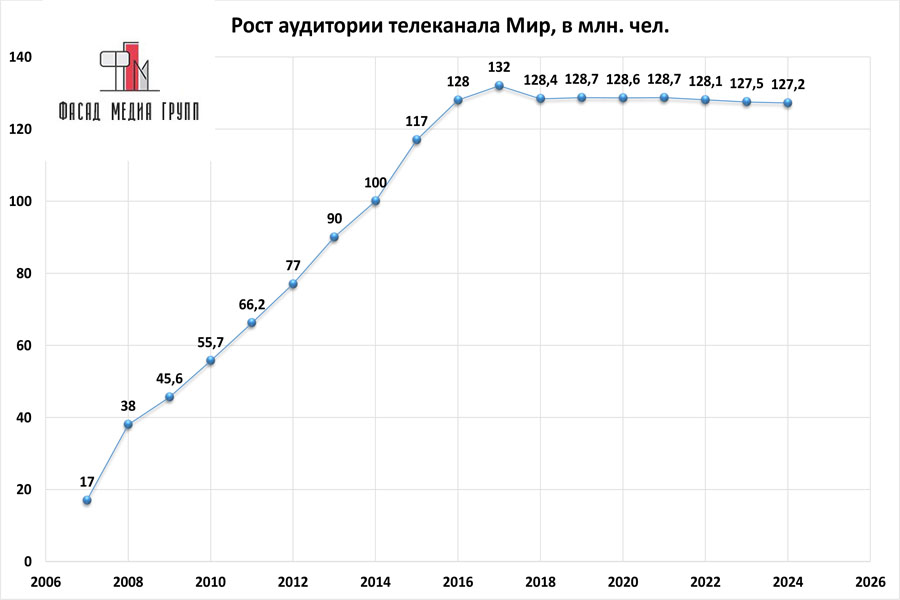 Показатели аудитории «Мир» по России: