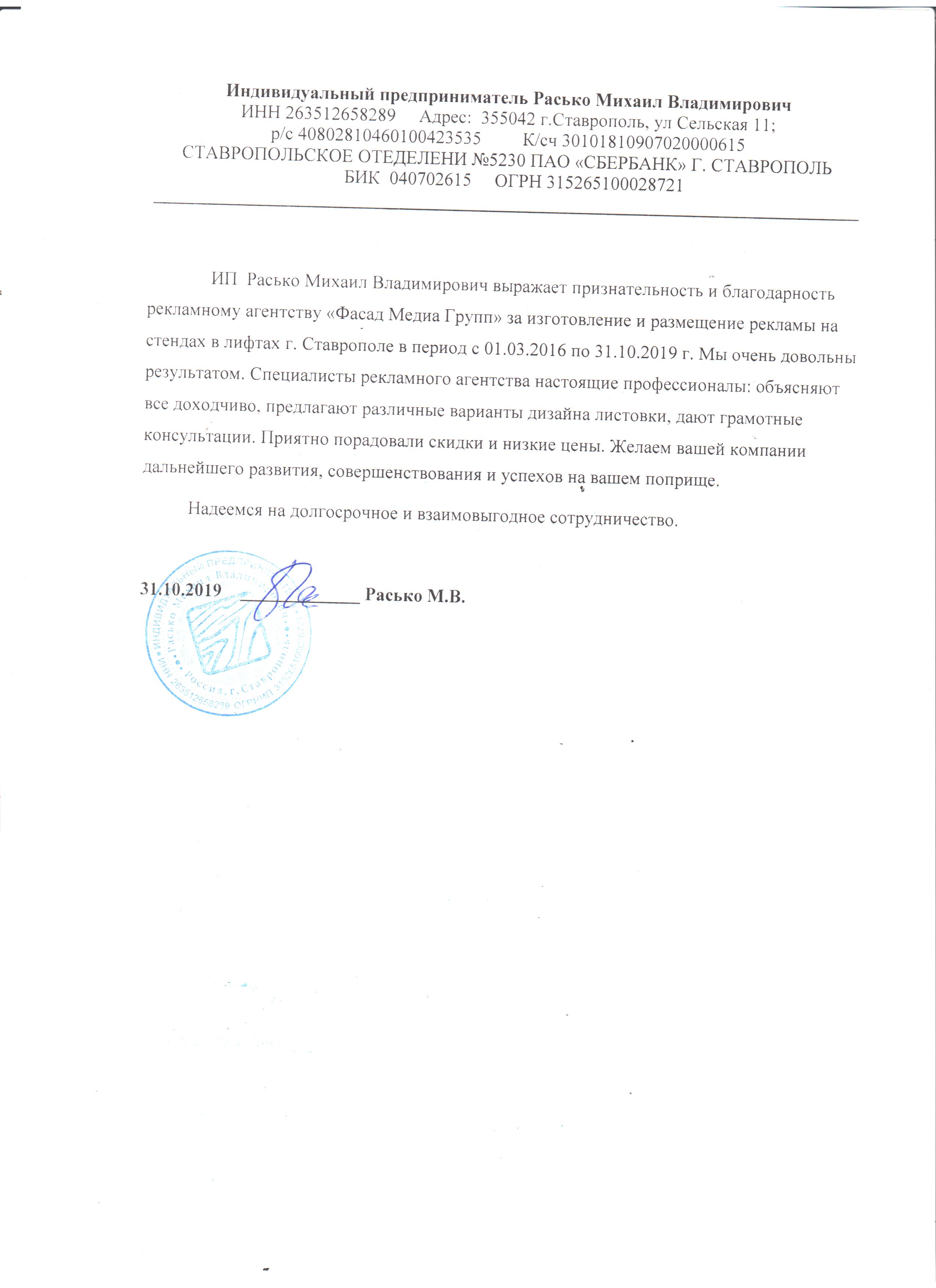 Специалисты рекламного агентства «Фасад Медиа Групп» помогут записать рекламные ролики, определить целевую аудиторию ваших товаров и услуг, выбрать нужные телеканалы для размещения рекламного объявления. Выбирая наше рекламное агентство, вы получаете высокий уровень сервиса и разумные цены. Обращайтесь в рекламное агентство «Фасад Медиа Групп». Будем рады сотрудничеству.