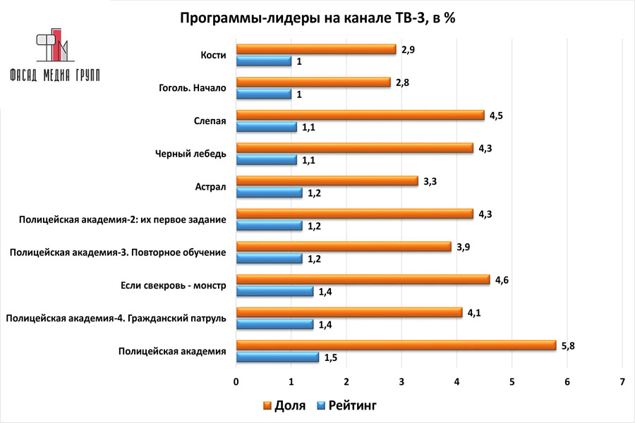 Рейтинги канала «ТВ-3» можно посмотреть на представленных графиках: