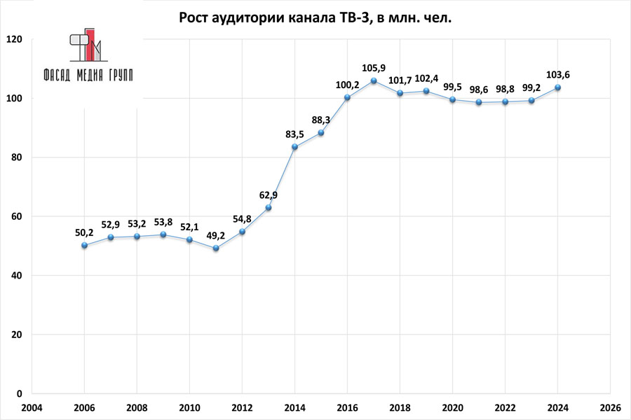 Показатели аудитории «ТВ 3» по России: