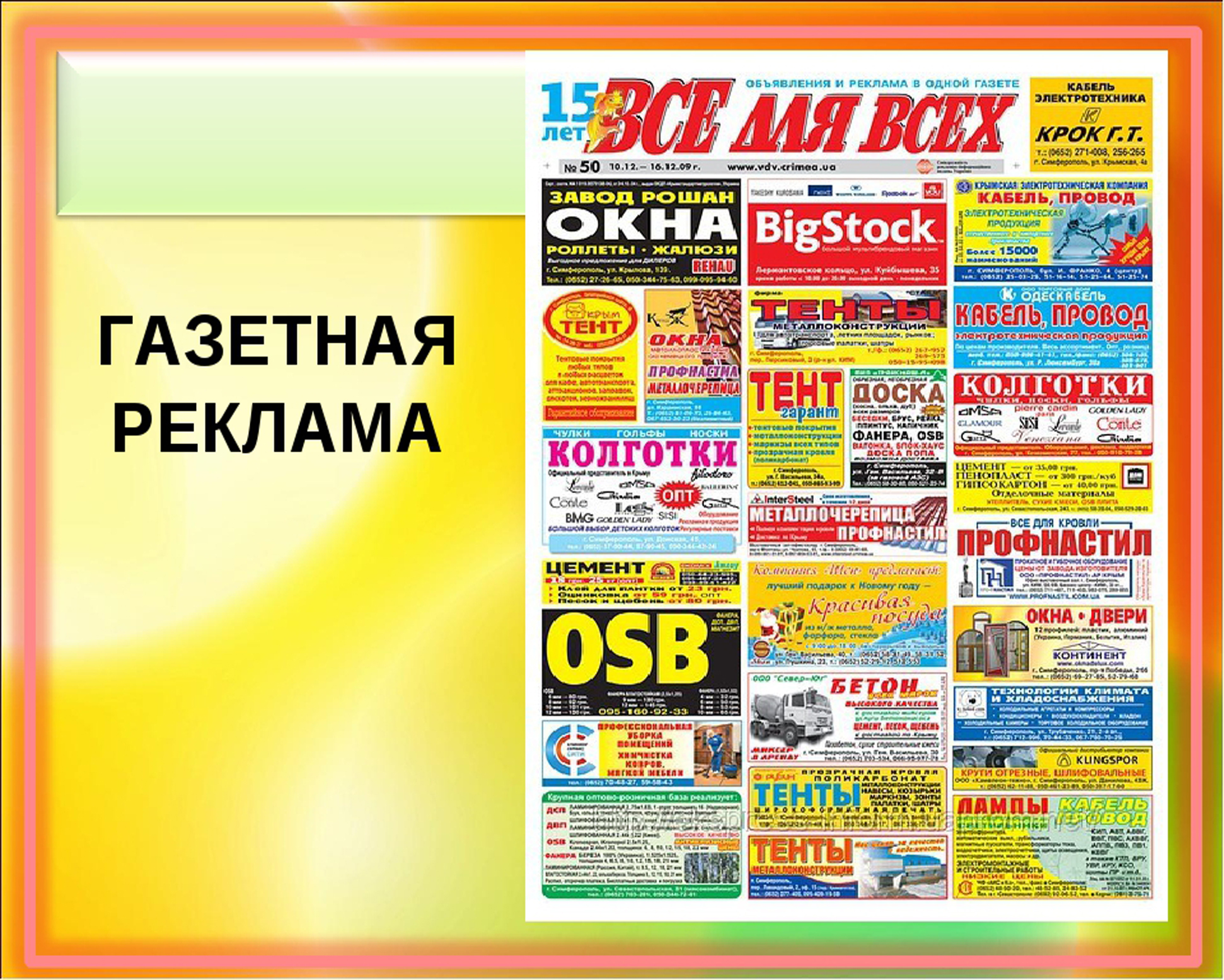 Газеты (печатные СМИ) предоставляют широкие возможности рекламодателю для размещения рекламы: