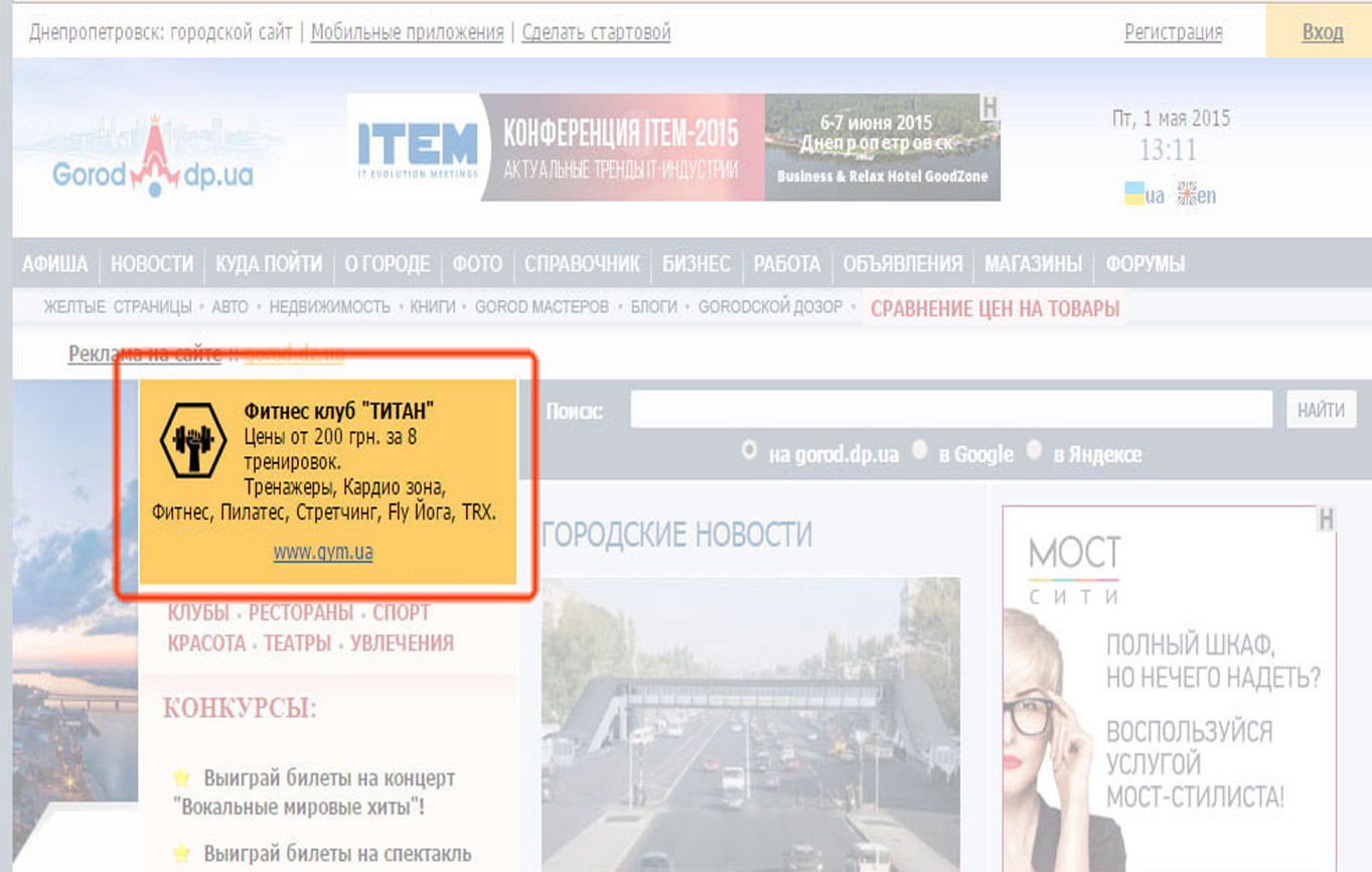 Пример рекламного баннера в интернет-СМИ представлен на фото: