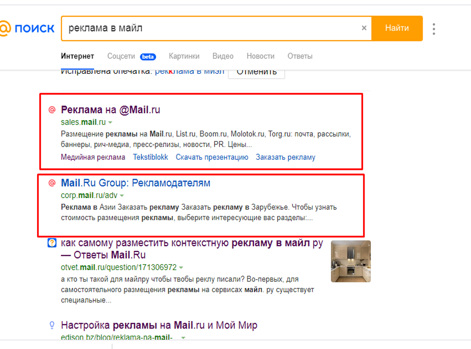 1. В зависимости от площадки размещения рекламы в Mail.ru (Мэйл):