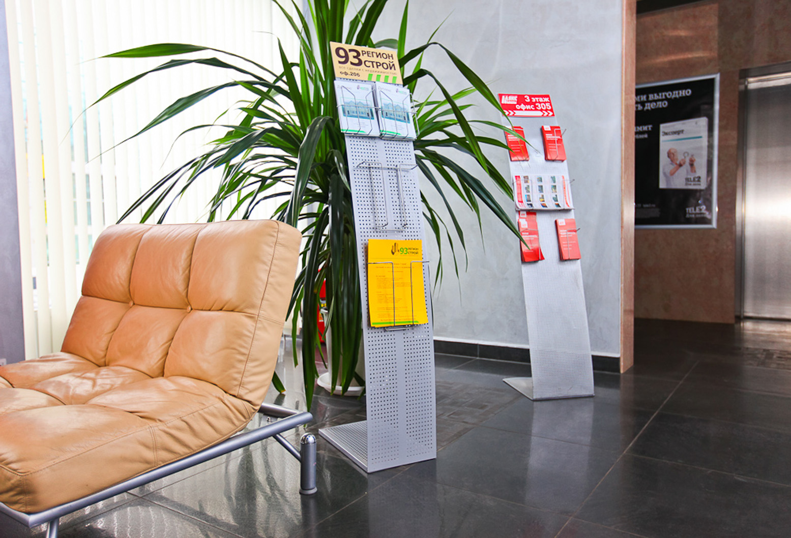 Реклама в бизнес-центрах отличается тем, что рекламные материалы располагаются на уровне глаз потенциального клиента или покупателя. Удачное расположение рекламы приводит к тому, что листовки, буклеты и другие форматы рекламы в бизнес-центрах хорошо видны и обеспечивают 100% читаемость со стороны посетителей.