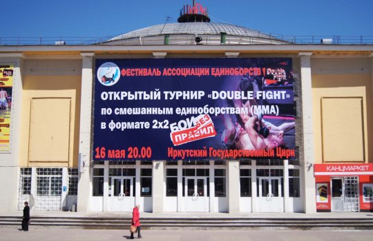 Пример рекламного баннера на здании цирка:
