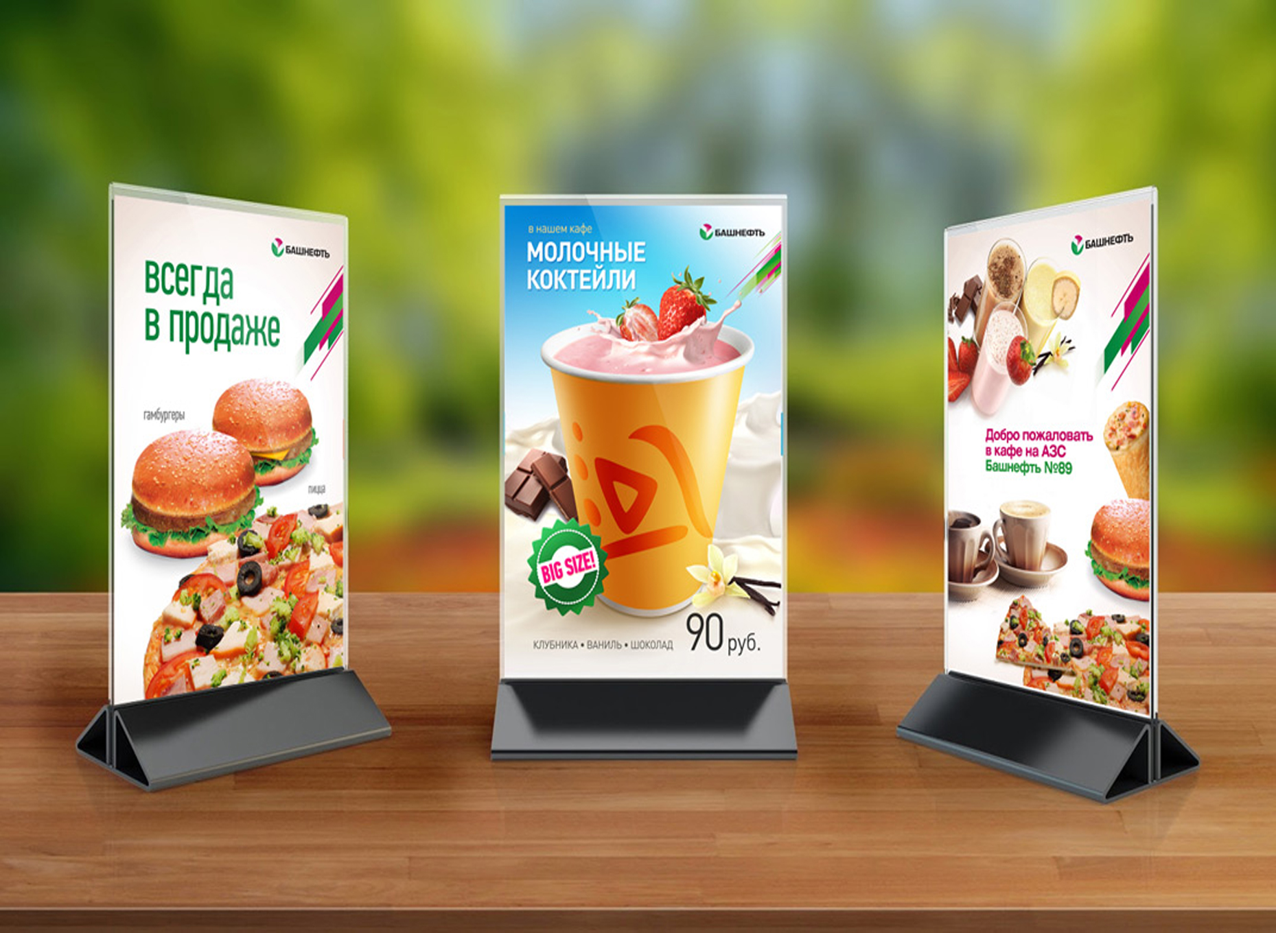 Примеры наших работ при размещении рекламы в кафе представлены ниже: