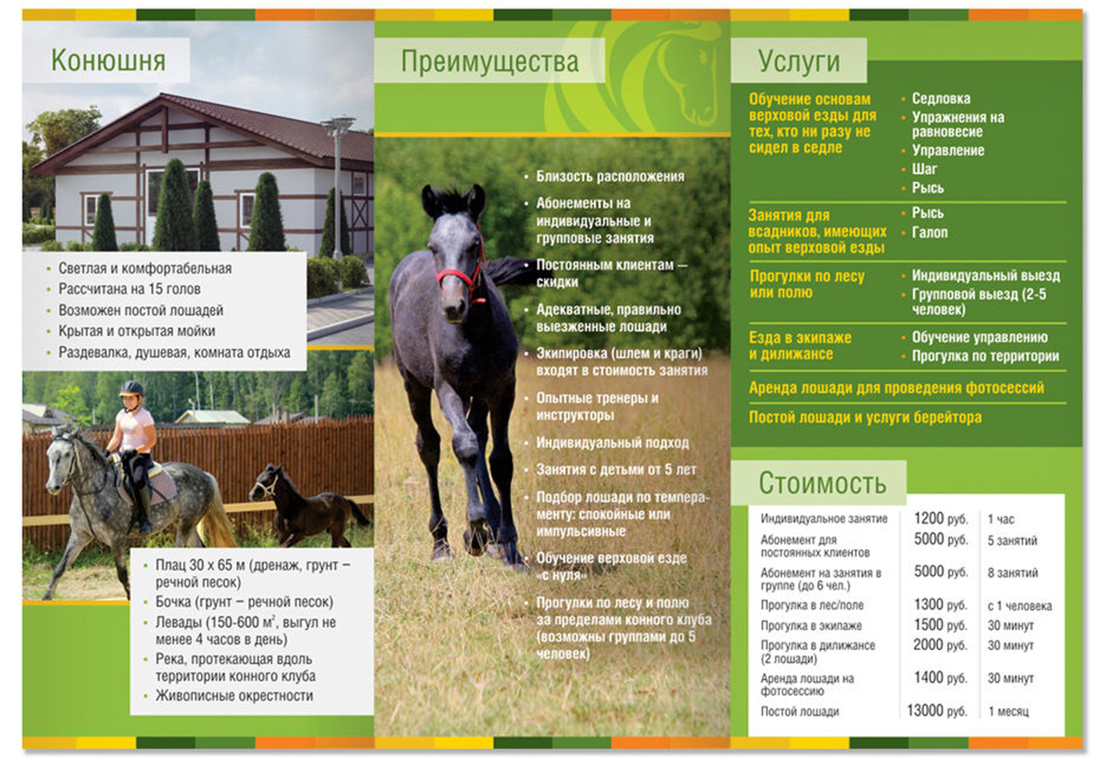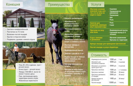 Пример печатных рекламных материалов в конном клубе: