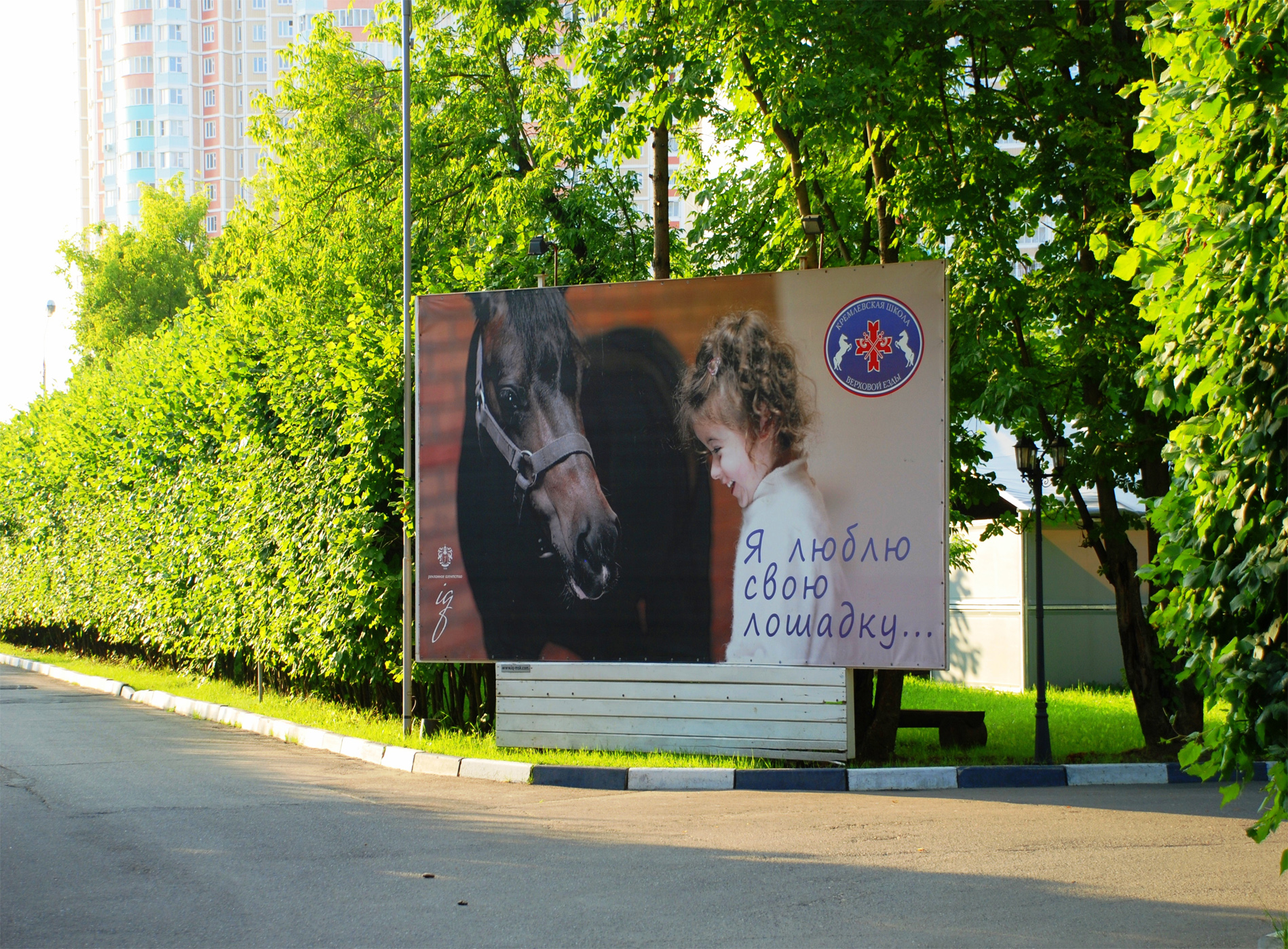 Пример рекламного баннера на территории конного клуба: