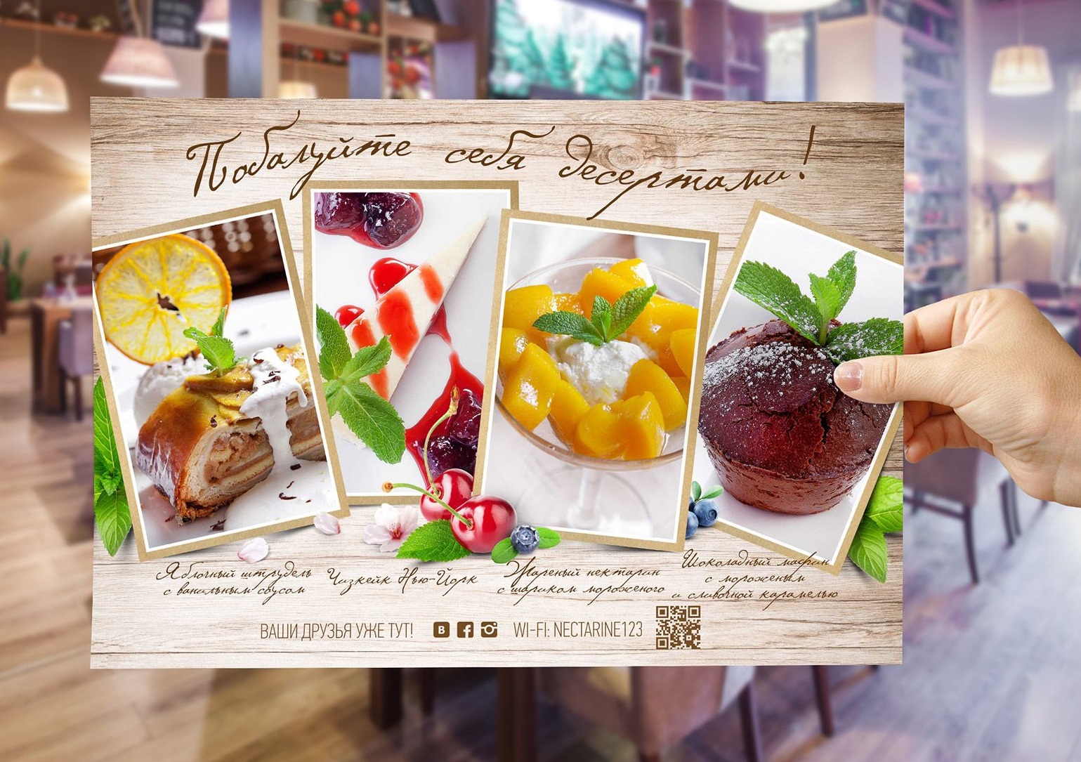 Пример печатных рекламных материалов в ресторане: