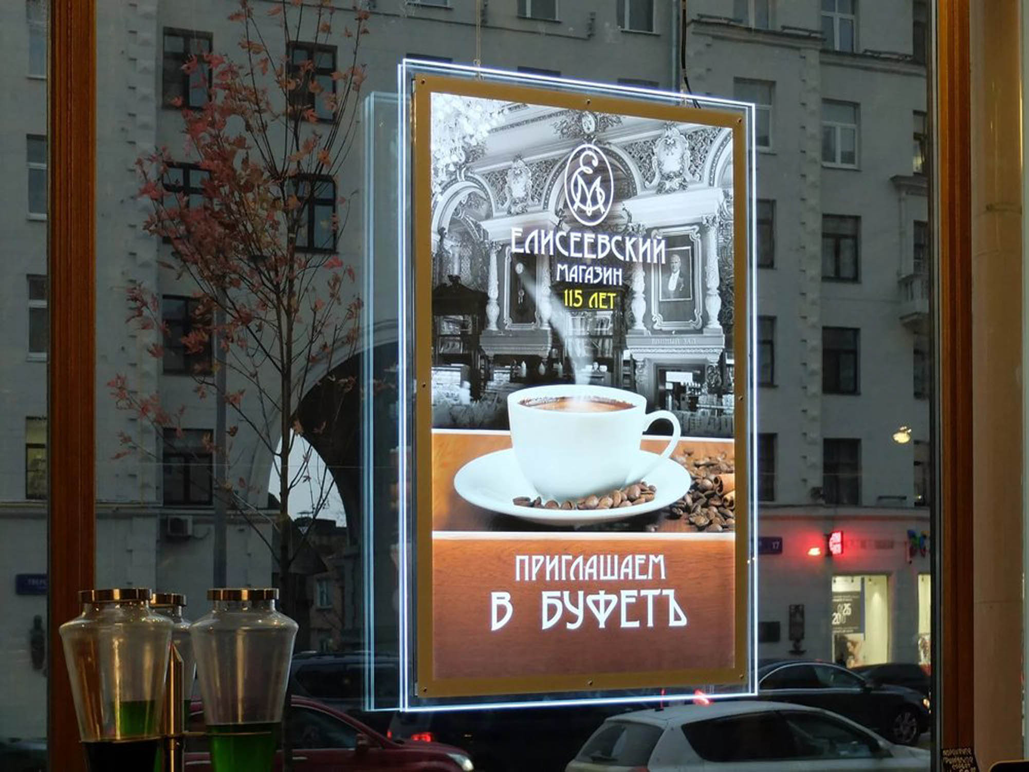 Пример рекламного лайтбокса в ресторане: