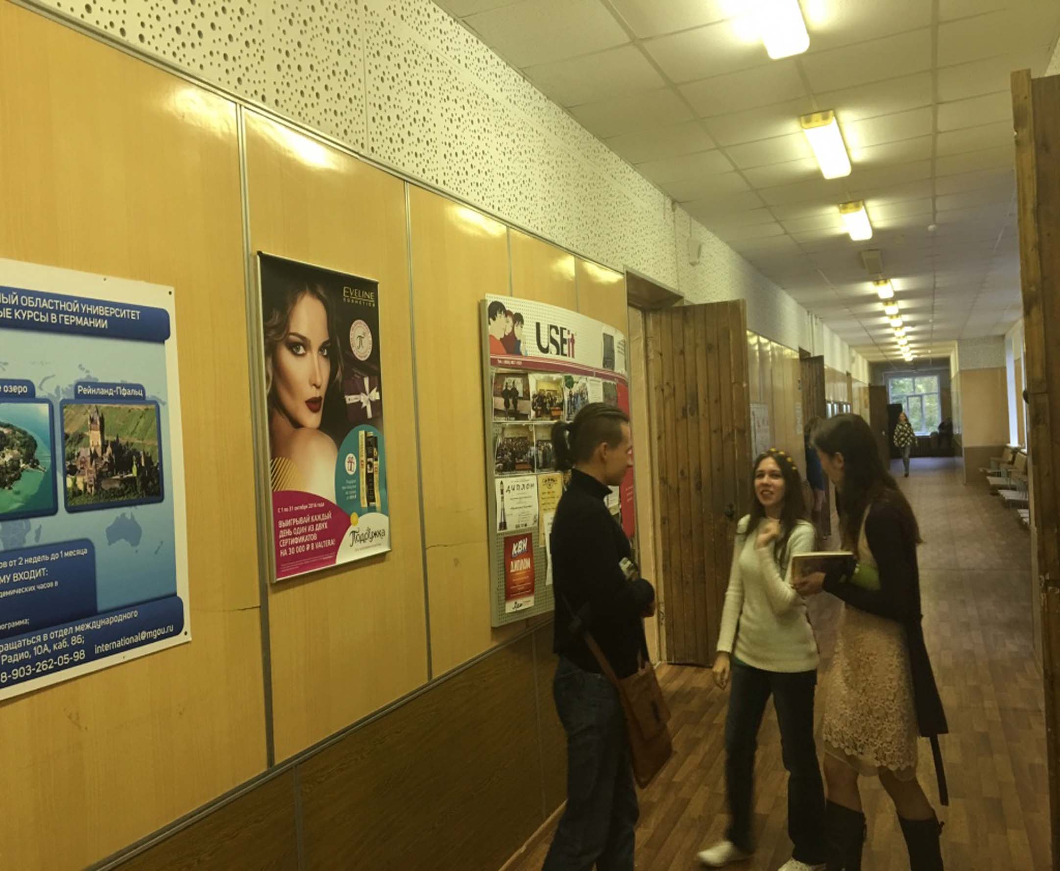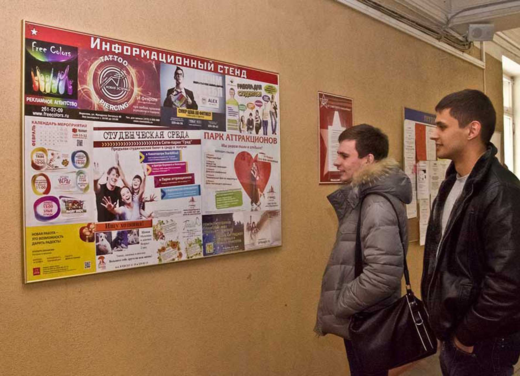 Монтаж рекламы в ВУЗах осуществляется по-разному в зависимости от того, какой рекламный материал размещается.