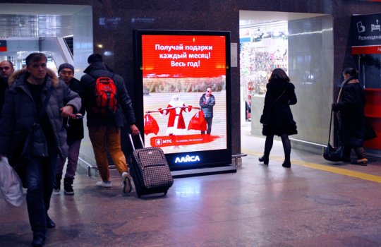 Пример рекламы в напольной конструкции на Ж/Д вокзалах: