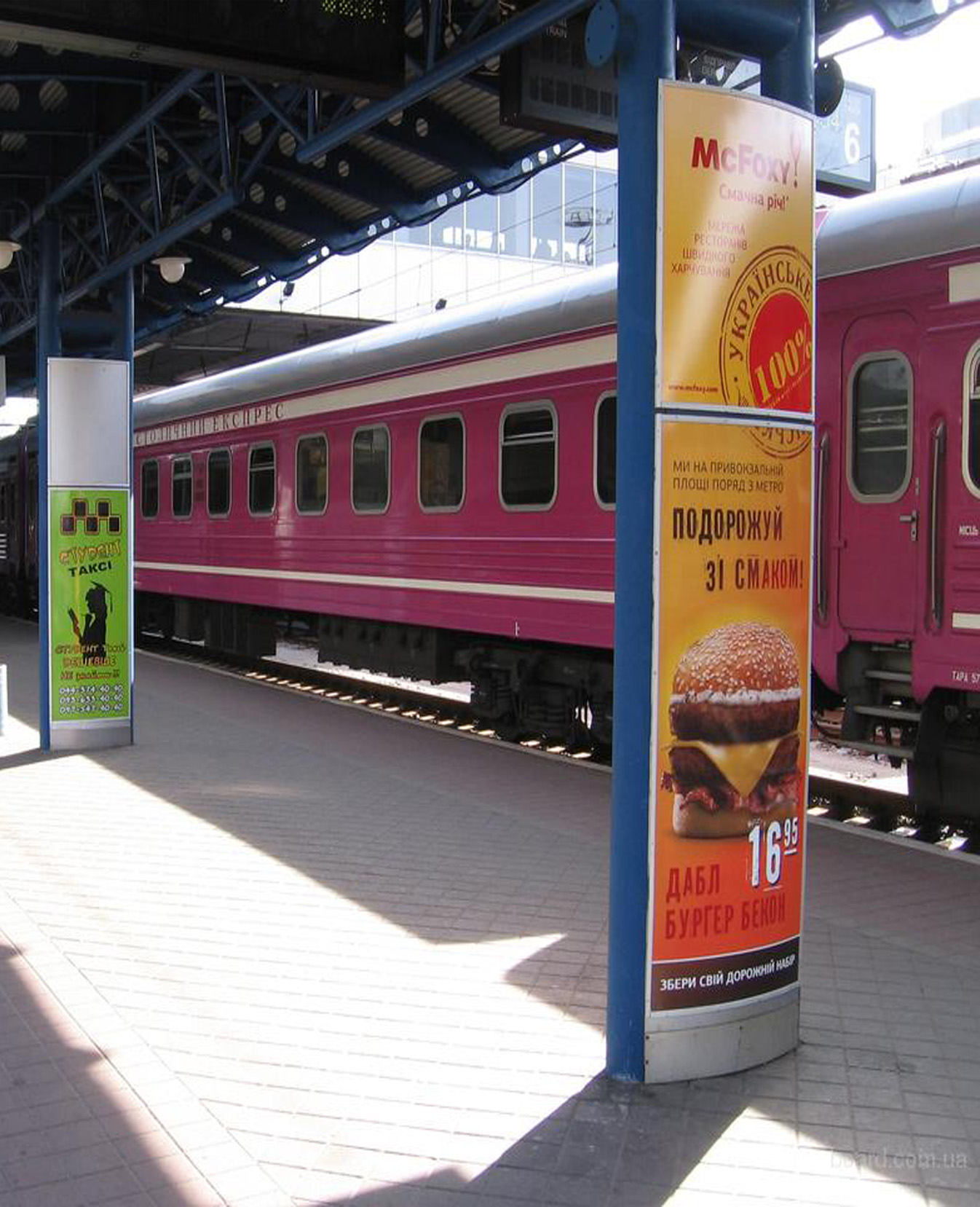 Монтаж рекламы на ЖД вокзалах осуществляется по-разному в зависимости от того, какой рекламный материал размещается.